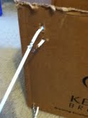 Step 2 – After you’ve cut off the flaps, you can discard them. The next thing you want to do is take four pieces of wire (about 2 feet long) and poke them through the bottom of your box near each of the corners:
