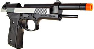 Spring/Bolt Action – Spring/Bolt Action powered means you must cock something back before each shot. On pistols you usually cock the slide back, rifles usually have a charging handle on the top or on the side, and revolvers you must cock the hammer back. Either way, what it does is compress a spring and capture air that will then help propel the BB. This type of gun is the most common type because of its simplicity, cheapness, and because it will fire under extreme heat/coldness where the batteries inside AEG’s or the CO2 inside Gas Powered guns might fail in extreme weather. You can even get spring guns wet and muddy and they still will fire (although, you should clean and dry them if they get wet because the springs will rust). But, as stated before, spring powered guns require you cock back the slide/cocking mechanism which make them slow to shoot, so they just can’t compete with AEG’s and Gas Powered guns.